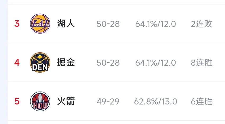 所以最终火箭第三,掘金第四,湖人第五,打来打去湖人还是要面对掘金[捂脸]
