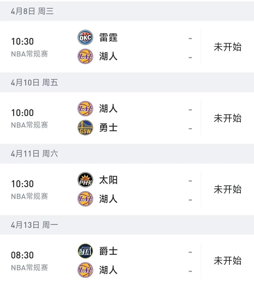 先来看湖人赛程,目前湖人的状况,打雷霆和太阳是肯定打不过的,打勇士这场,如果勇士已经锁定了西部第十的话,湖人还有获胜的机会,最后一场爵士问题不大。所以湖人最后四场,不是一胜三负就是二胜二负,看好1胜3负,最终51胜31负。