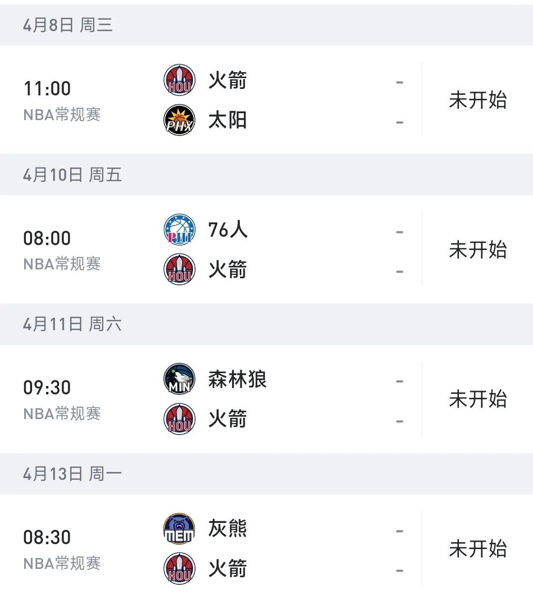 再来看火箭,火箭其实也很想做西部第三,哪怕避开湖人打森林狼火箭也会选择第三的。火箭的赛程是相对最轻松的,接下来的对手实力都不如他,看好火箭,最终四战全胜结束,最终战绩为53胜29负!