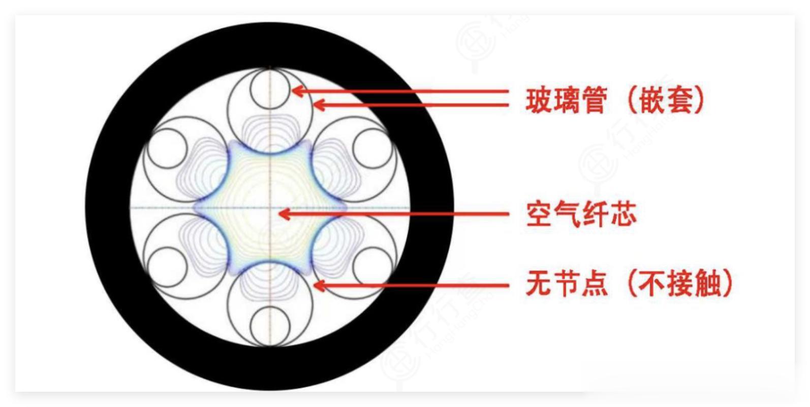 光在空气或真空纤芯传输,靠光子带隙或反谐振等微结构包层约束光,内部真空或气体环境可有效降低光传播损耗。