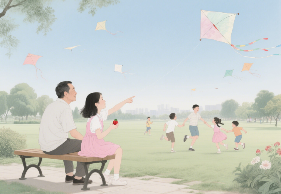 周末的时候,晓晓会带我去公园玩。我们会坐在长椅上,晒晒太阳,聊聊天。有次她指着不远处的一个小女孩,笑着说:“爸,你看那个小女孩,跟我小时候多像,扎着羊角辫,手里还拿着颗草莓。” 我看着那个小女孩,又看看晓晓,心里满是幸福。