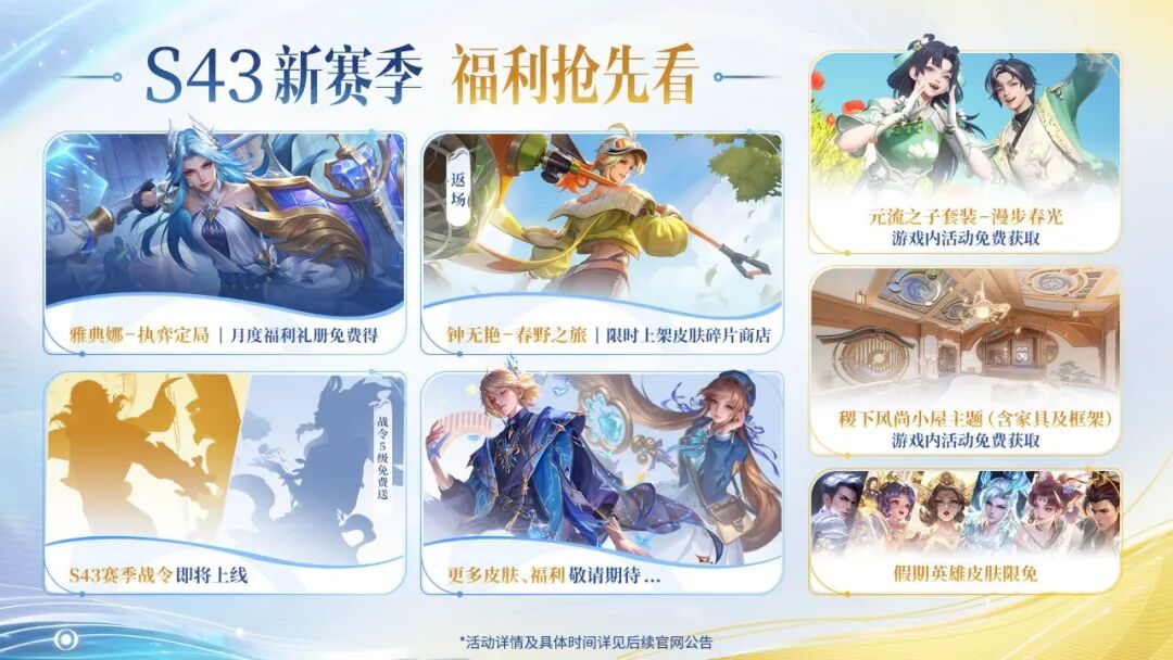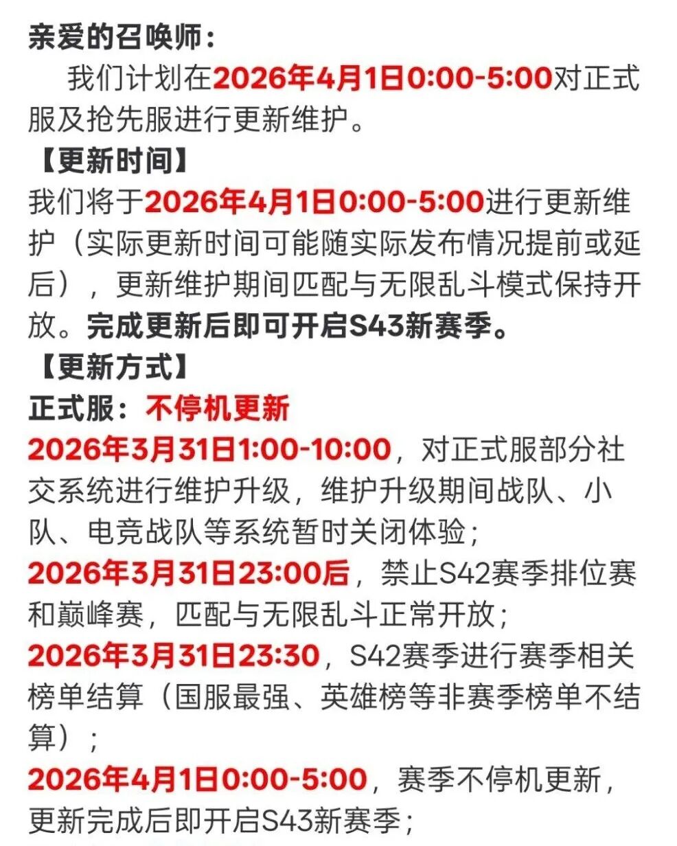 王者荣耀正式服S43赛季的更新时间,想必不需要多说了,就是4月1日更新。其实从抢先服出更新公告的时候就已经确定了正式服的更新时间了。具体的更新内容可以去看一下更新公告,反正之前都已经介绍得差不多了。