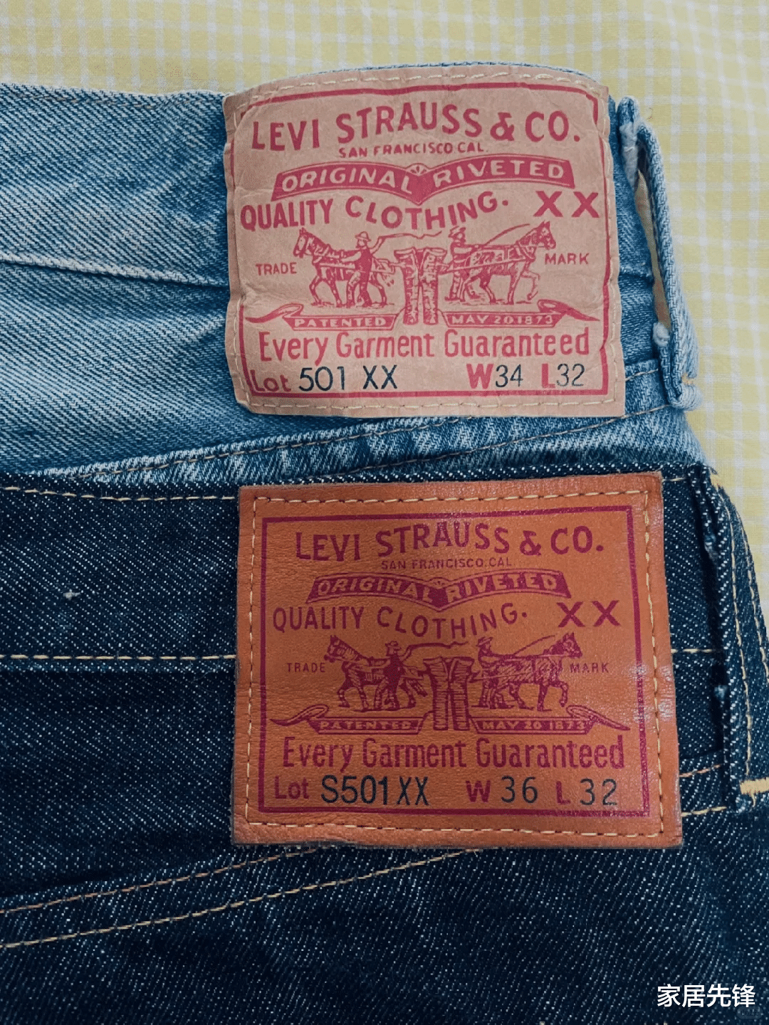我们也可以通过后面牛仔裤的皮标来辨认自己买的牛仔裤质量是好还是坏?买的是否是正品?