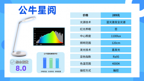 推荐理由:光线比较集中能照亮120cm的桌面,满足日常使用需求。