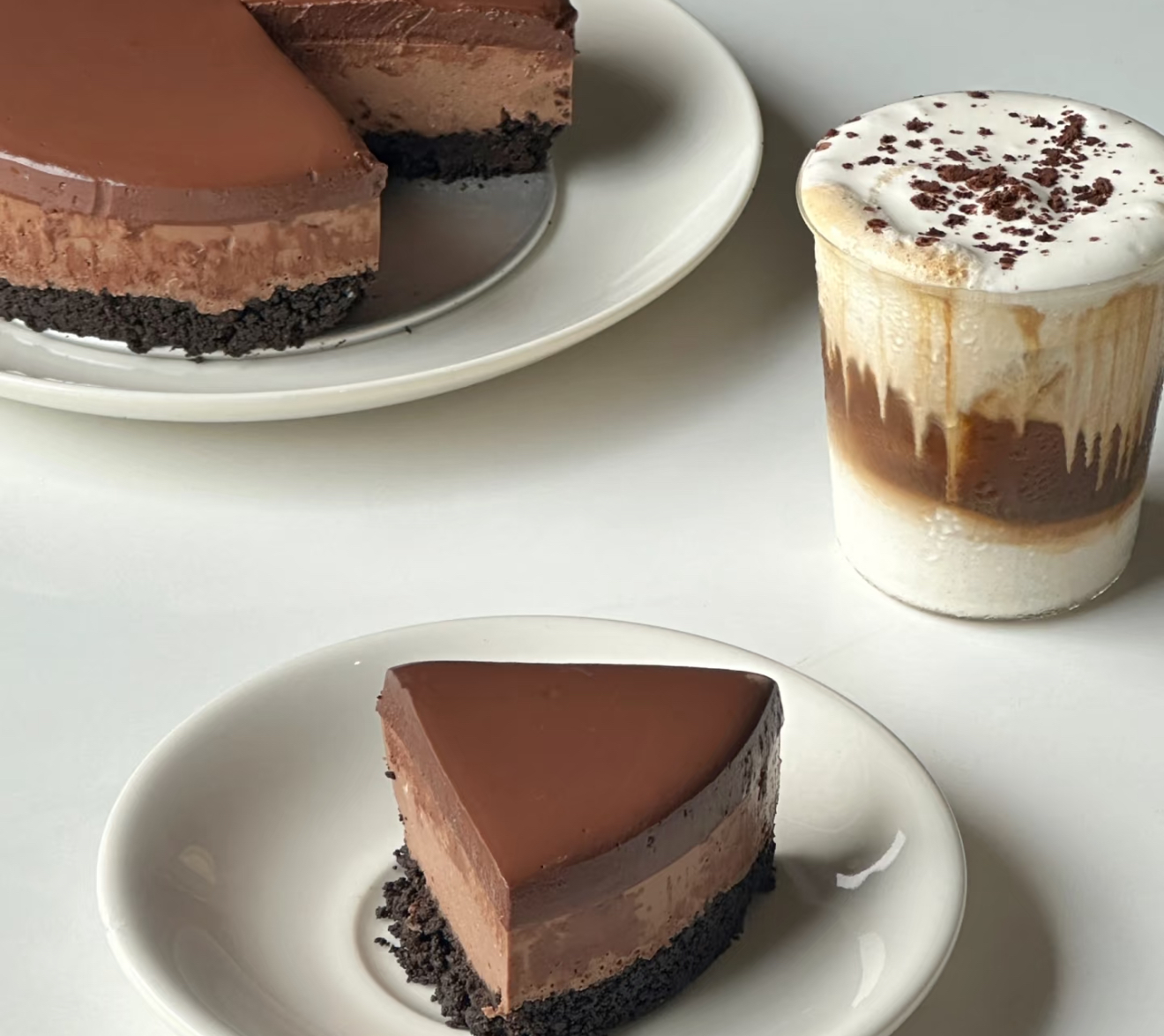 • 层次魔法:先倒半杯慕斯液,中间藏块奥利奥饼干,再盖满慕斯液。切开时会有惊喜的巧克力岩层效果!