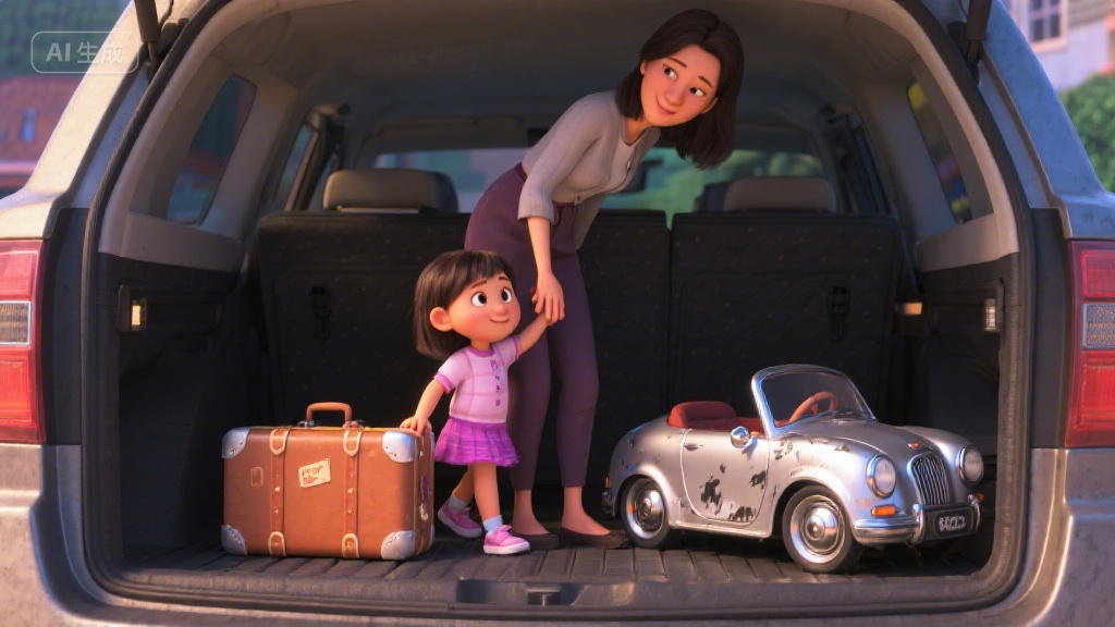 林薇把最后一只行李箱塞进后备箱时,女儿朵朵突然拽住她的衣角,举着手里掉了漆的玩具车嘟囔:“妈妈,小白还没上车呢。”