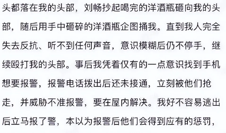 那时候梁先生已经躺在地上动弹不得,刘奕畅还拿着碎酒瓶在他面前比划。