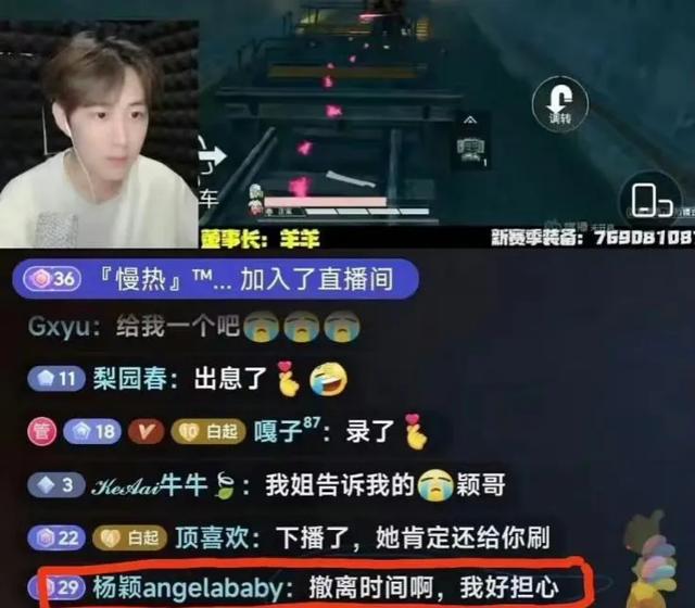 只见 Angelababy 的账号一直在该直播的贡献用户榜单上,还在弹幕中留言“撤离时间啊,我好担心”,这充满童趣的话语,瞬间让网友们察觉到不对劲,大家纷纷喊话:“小海绵别玩你妈手机了”。