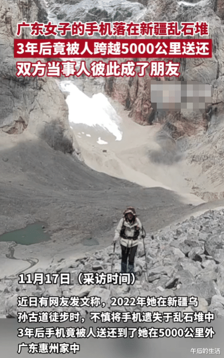 跨越五千公里的善意:一部手机牵起的三年守候 2022年盛夏,广东姑娘纵贯与丈夫及旅友在新疆乌孙古道徒步时,因误入一片无路可寻的碎石地,不慎将手机遗落在乱石堆中。这部承载着蜜月回忆的手机,就此消失在海拔3000米的无人区。