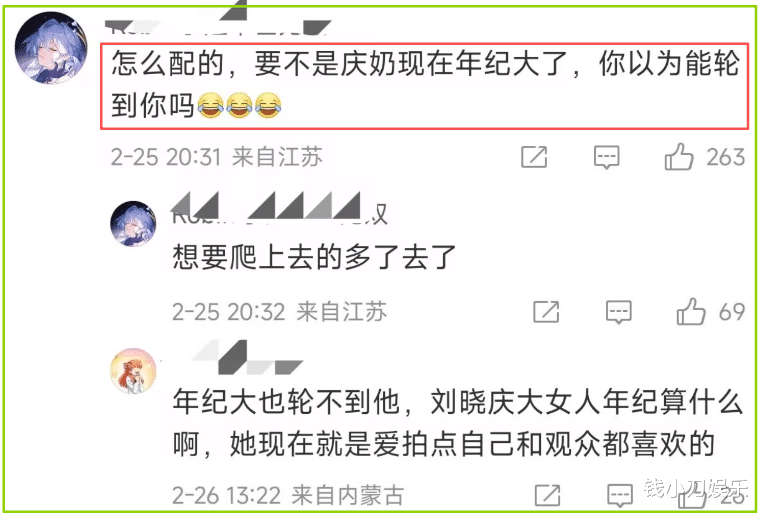 刘晓庆演短剧吻戏的事情上了热搜之后,大部分网友都表示支持,还有人心疼刘晓庆,觉得男演员年龄大还不够帅,委屈咱庆奶了。