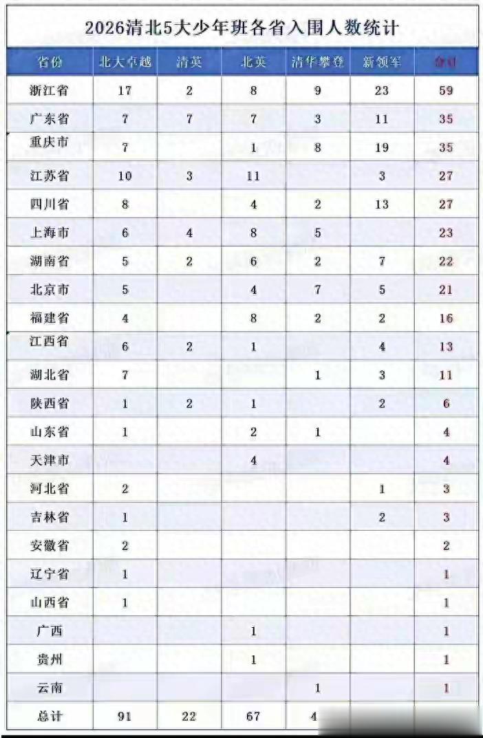 2026清北“少年班”入围:浙江59人断层第一,谁是未来教育黑马?