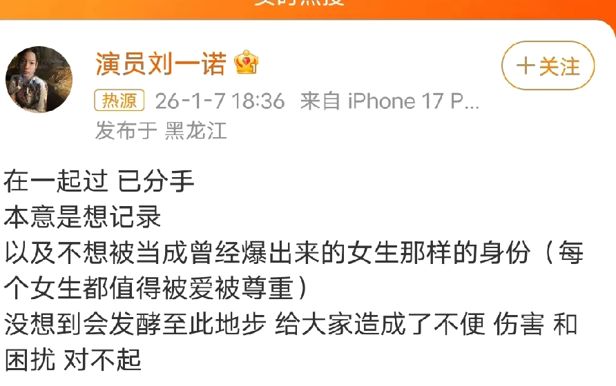 1月7日,娱乐圈被一则恋情消息搅得沸沸扬扬。刘一诺公开回应与檀健次的恋情绯闻,坦言两人曾在一起过,不过如今已分道扬镳。紧
