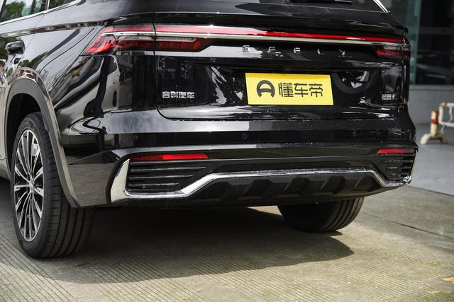 车身侧面的线条走势舒展而连贯,一条硬朗分明的字符线从车头灯一直延伸至尾灯,勾勒出车体的修长感。车窗边框点缀的金属饰条与车身线条相互呼应, subtly 提升了整体的精致度。星越L的轮眉设计也颇具匠心,略微向外扩张的弧度不仅强化了车身的体量感,也暗示了其作为SUV的通过能力。目光移至车尾,时下流行的横贯式尾灯设计是星越L的一大亮点,它不仅拉伸了车尾的视觉宽度,也增强了夜间行驶时的被辨识性。尾灯内部光源排列有序,亮起时呈现出独特的视觉效果。车尾下部,左右各二的排气管口装饰,为整车增添了些许运动化的视觉点缀。