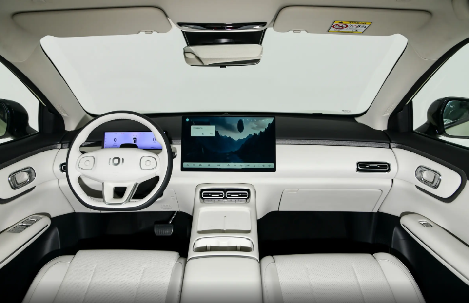 来到车内,一个干净整洁的座舱呈现在面前,三幅平底式方向盘配合怀挡,操控起来相当方便。悬浮式中控屏和仪表盘看起来相当轻巧,为了提升内饰层次感,中控台明显分成上下两个色块,一直延伸至门板内侧。15.6英寸中控屏原本是没什么好说的,但是因为它配备了4纳米车规级MT8676座舱芯片和24G超大内存,瞬间为它增色不少。市面上所有手机几乎都能跟这套车机系统进行互联,为日常出行提供更多便捷。