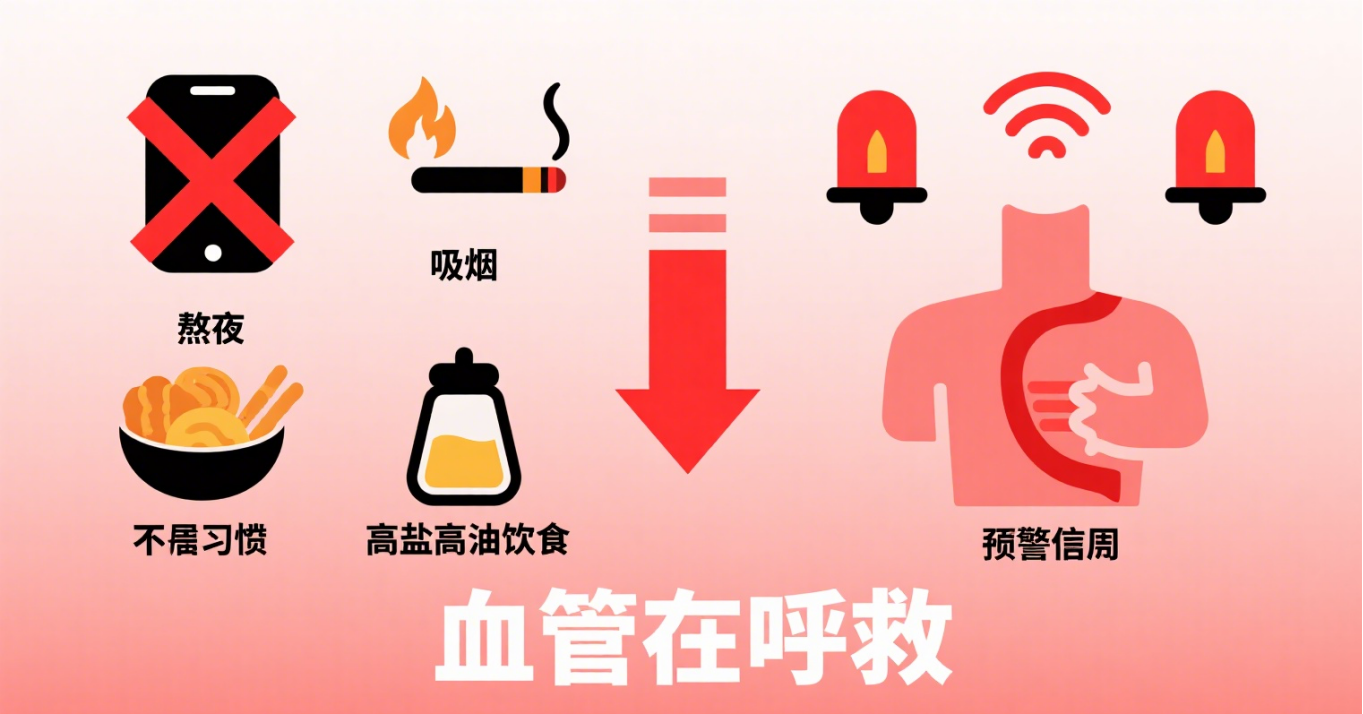 护心脑没有捷径,关键在“早”——早揪出坏习惯,早读懂身体暗号,早做好科学防护。记住,血管的健康状态,藏在每一顿饭、每一次运动、每一次情绪管理里。从今天起,告别伤血管的坏习惯,给身体多一份关注,血管才能更通畅,生活才能更有活力。