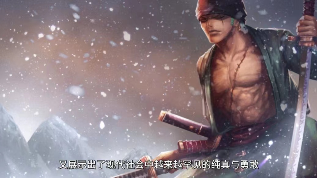 一方面,索隆的梦想,让人联想到东方的武士道,或是古代的侠客精神,而另一方面,这个三刀流的剑客,又展示出了现代社会中越来越罕见的纯真与勇敢。比起路飞,或者其他海贼王的角色,索隆似乎更容易挑起观众心中的英雄梦。