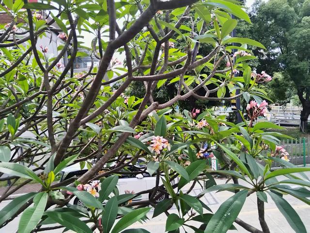 为夹竹桃科鸡蛋花属落叶小乔木,原产南美洲,我国南部有栽培。花鲜红色,枝叶青绿色,树形美观,是很好的观赏植物。