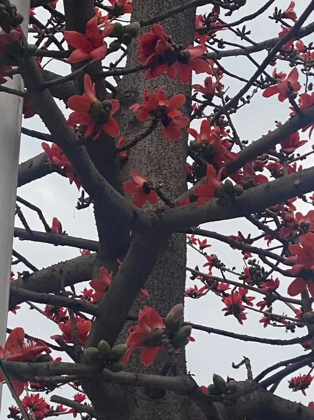 俗名攀枝花、英雄树、红棉,是锦葵科木棉属落叶大乔木,产于我国南方热带亚热带地区。花可食用;花、根皮、树皮药用;果内棉毛可作枕、褥、救生圈等填充物;种子榨油工业用;也是用材和观赏树种。