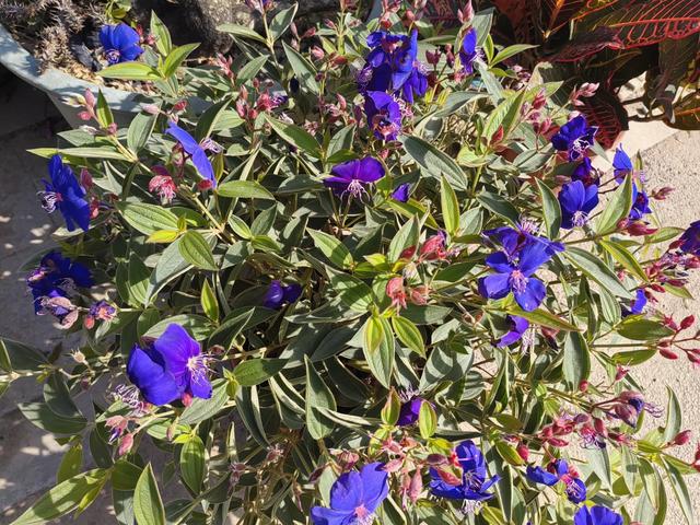 为野牡丹科蒂牡花属常绿灌木,原产热带美洲,我国南方多地引种栽培。花朵蓝色,很好的观赏植物。