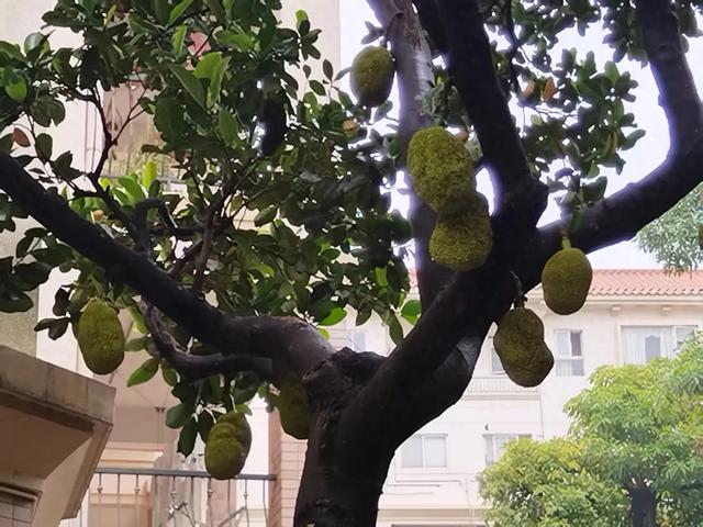 俗名菠萝蜜、牛肚子果、树波罗、木波罗,是桑科波罗蜜属常绿乔木,可能原产印度西止山,我国广东、广西、海南、云南等地栽培。为热带水果,可食用;冠大荫浓,可作庭荫树和行道树;木材金黄,材质坚硬,可制家具,也可作黄色染料。