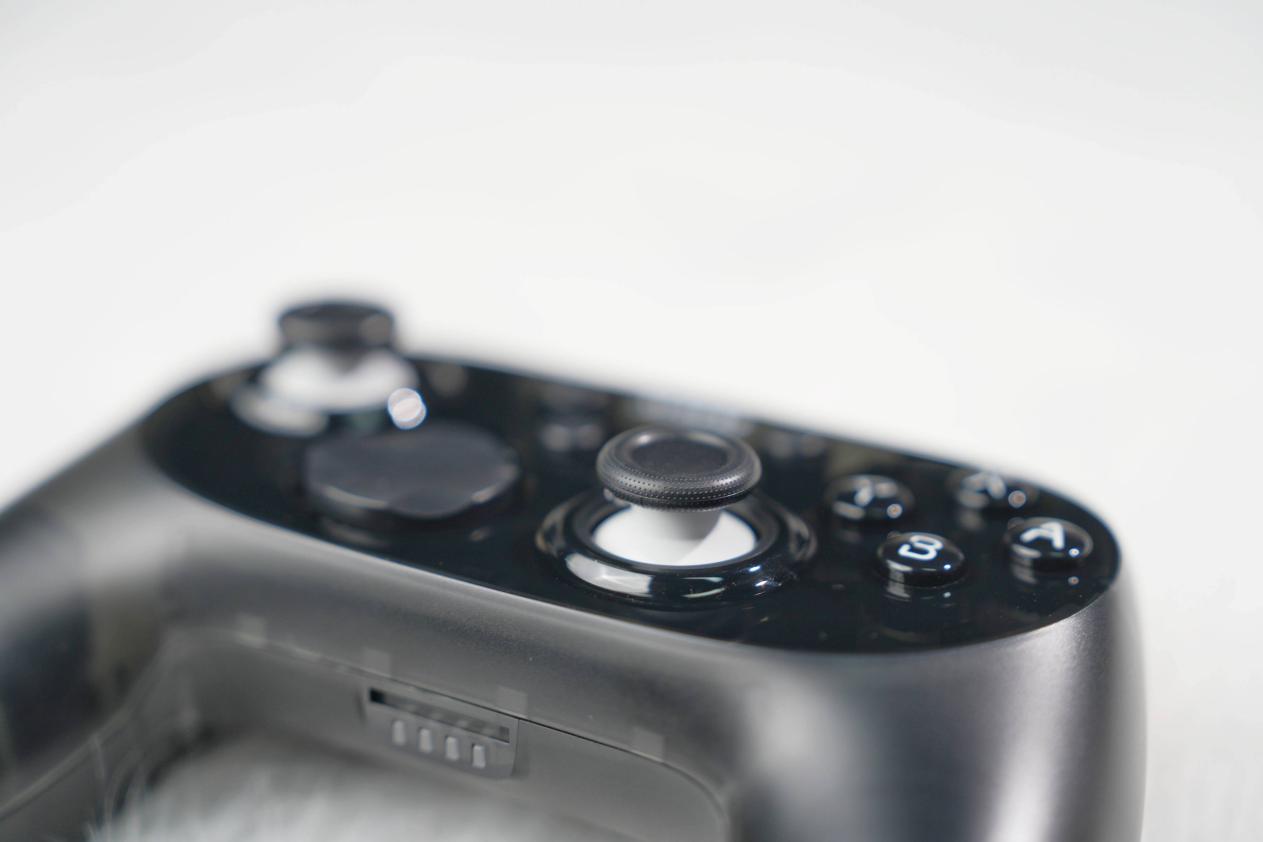 这款手柄最具辨识度的设计来自三段式磁吸外壳,顶部面盖与两侧握把都能独立拆卸,支持自由更换与个性化搭配;随机还附带两种不同形态的十字键方案,满足不同玩家的操控偏好。手柄整体做工扎实,握持区贴合度高,长时间游戏也比较稳。核心操控方面,摇杆采用12bit、4096级高分辨率方案,顺滑细腻、回中稳定,适合精细瞄准与慢推操作;动作按键与肩键采用机械微动结构,触发行程短、反馈明确。扳机采用激光防滑纹理,并提供双模式切换,在竞速与格斗等不同类型游戏中的区分感比较明显。