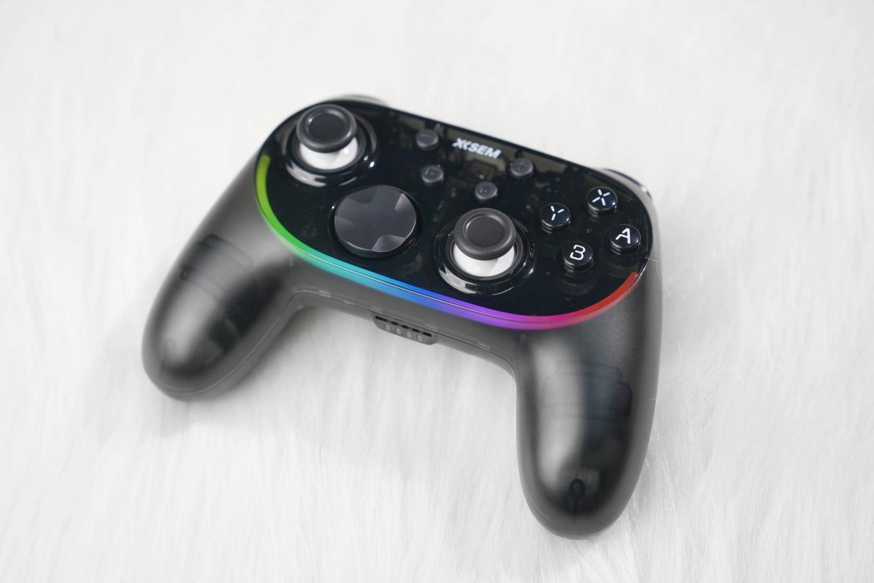 西圣GC1搭载电竞级极速连接引擎,延迟低至0.5ms,支持2.4G、蓝牙及Type-C三模连接,操作几乎无感延迟。原生六轴体感传感器实现旋转、倾斜、挥动等动作的1ms级低延迟精准映射,沉浸式操控体验一触即发。手柄轻量化设计(214g)、握角科学(15°)、NanoSkin亲肤防滑涂层贴合手型,握持稳固舒适;半透明幻雾晶透机身配合RGB炫酷灯效与10种模式,科技质感满分。全平台兼容性极强,Switch、PC、手机均可轻松畅玩,让这款百元级手柄的整体配置和体验在同价位中几乎无敌。