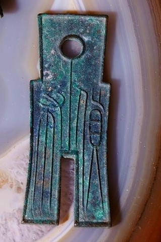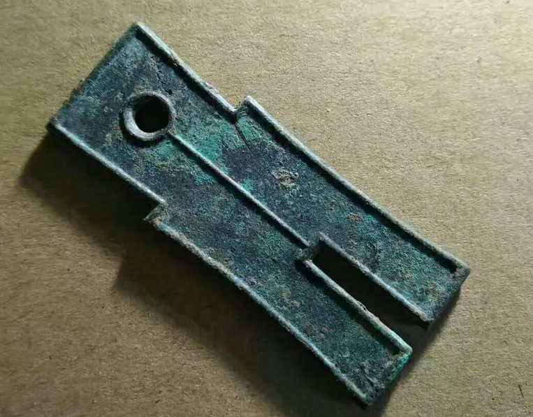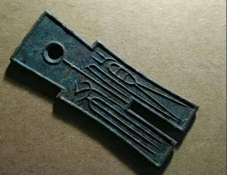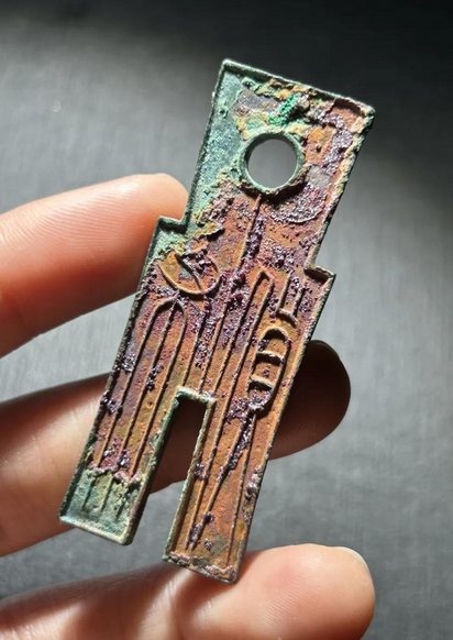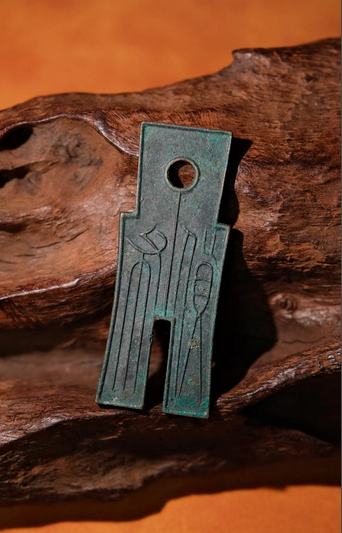 从形制上看,货布继承了战国时期布币的传统造型,却在规整度与精美度上实现了质的飞跃,堪称布币形制的“终极进化版”。它整体呈铲状,造型修长挺拔,首部有一圆形穿孔,便于穿绳携带,钱身中部至足部有一条凸起的脊线,将币面均匀分割,轮廓分明、线条流畅。货布的尺寸与重量极为标准,通常长约5.6至5.8厘米,平均重量16.5克,肩窄束腰、方足平阔,每一处细节都经过精心设计,既保留了古代布币“象物取形”的古朴韵味,又融入了新朝追求规整、对称的审美情趣,展现出高超的铸造工艺。这种严谨的形制设计,不仅让货布具备了实用的货币功能,更使其成为一件兼具实用性与艺术性的青铜艺术品,与同期粗糙的流通货币形成了鲜明对比。