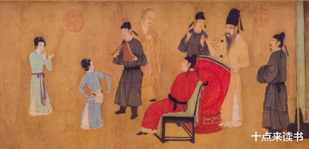 画面中间穿着袈裟的,是韩熙载的好友德明和尚。