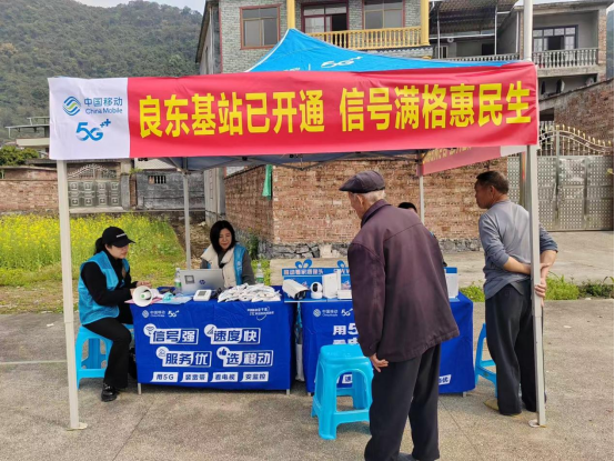 基站开通次日,移动工作人员在良东屯开展便民服务活动,现场为村民讲解通信业务、排查用网故障、指导智能终端使用,将便民服务送到群众家门口。