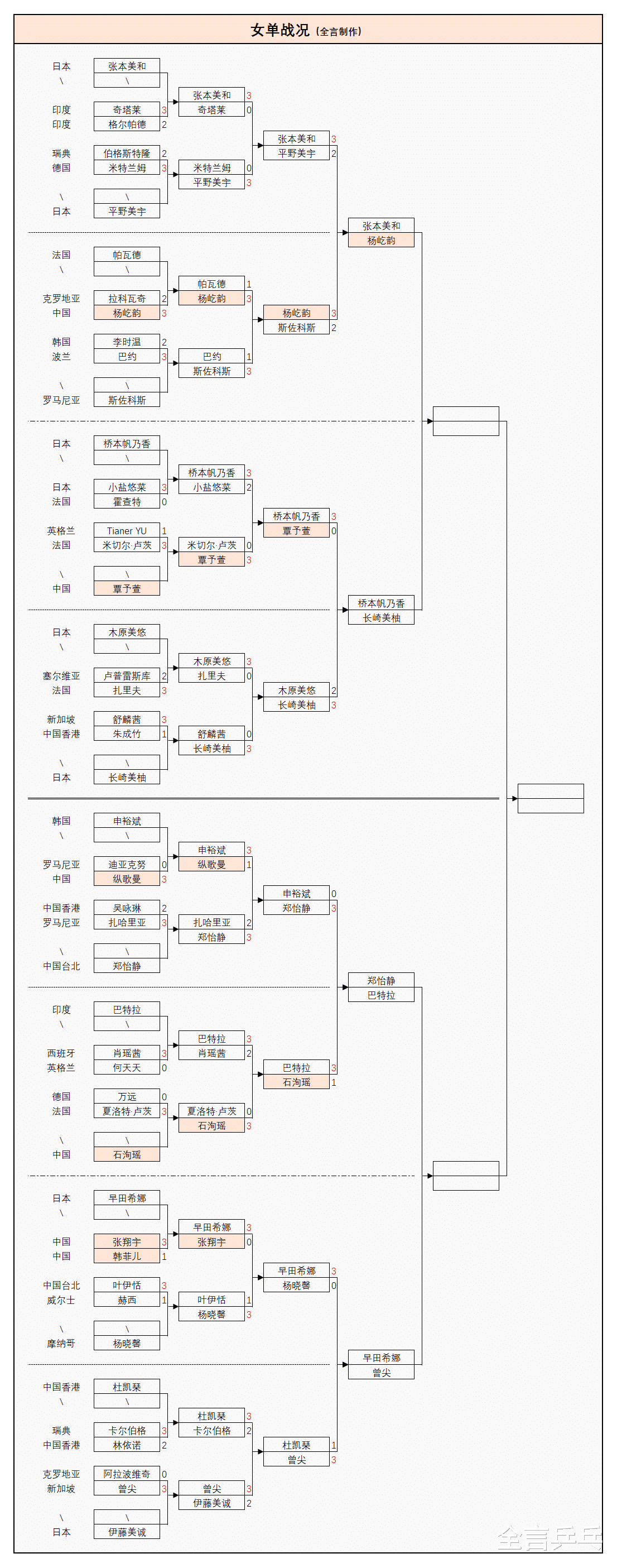 1/8区:张本美和(日本)3-2平野美宇(日本);
