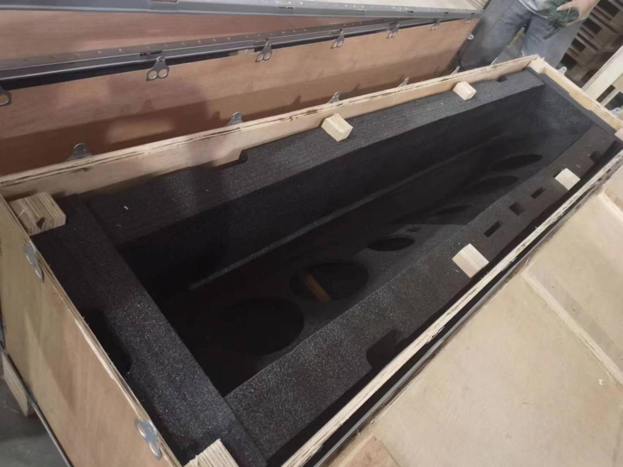 易碎精密货物(仪器、玻璃制品):采用 “悬浮缓冲 + 全包裹” 设计,内部用 5cm 厚高密度 EPE 珍珠棉(密度 40kg/m³)按货物轮廓定制内衬,缝隙填充发泡胶(膨胀率 1:30),底部加装弹簧减震器(阻尼系数 0.25),将震动传递率降低至≤30%。