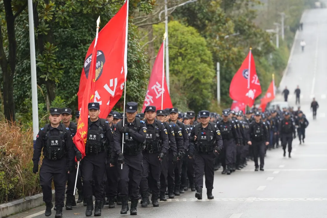 为全面提升特警队伍在复杂环境下的应急处突能力,锤炼过硬作风,检验实战水平。2月28日,遵义市公安局特巡警支队、四城区分局特巡警大队200余名警力开展“春季攻势”暨第一季度全市公安特巡警跨区域拉动演练。