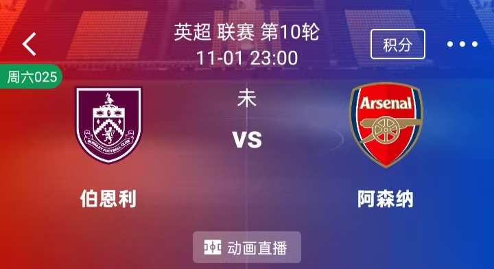 周六 025 英超:伯恩利VS阿森纳
