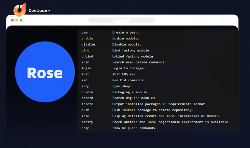 rose 命令行工具: 扮演了npm或cargo的角色。它提供了install, push, run, create等一系列完整的包管理和项目运行命令。
