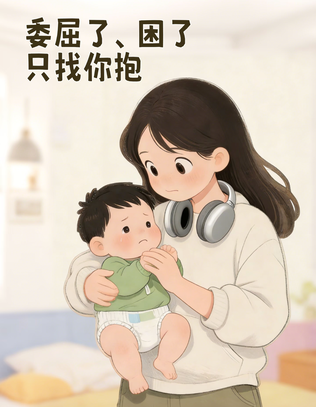 他最无助、最需要港湾的时候,只会张开小手,跌跌撞撞扑向你的怀抱。委屈了,泪水还挂在睫毛上,却一头埋进你的颈窝;困倦了,在别人怀里扭来扭去,可一到你身上,就寻到熟悉的心跳与气味,瞬间安静下来,沉沉睡去。那是一种毫无保留的信赖,他把最脆弱的自己全盘托付给你,因为你不仅仅是照看他的人,更是他安全感的全部来源。这份专属的依恋,是他最直白的情书。