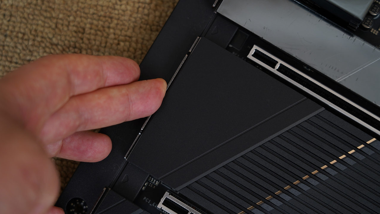 主板的M.2散热马甲采用了免工具拆装设计,轻轻一按即可完成拆装,十分方便。