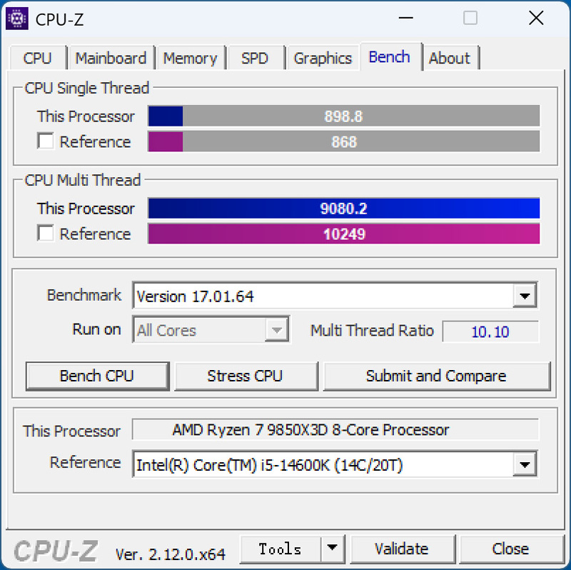 再测下理论性能,CPU-Z基准测试。