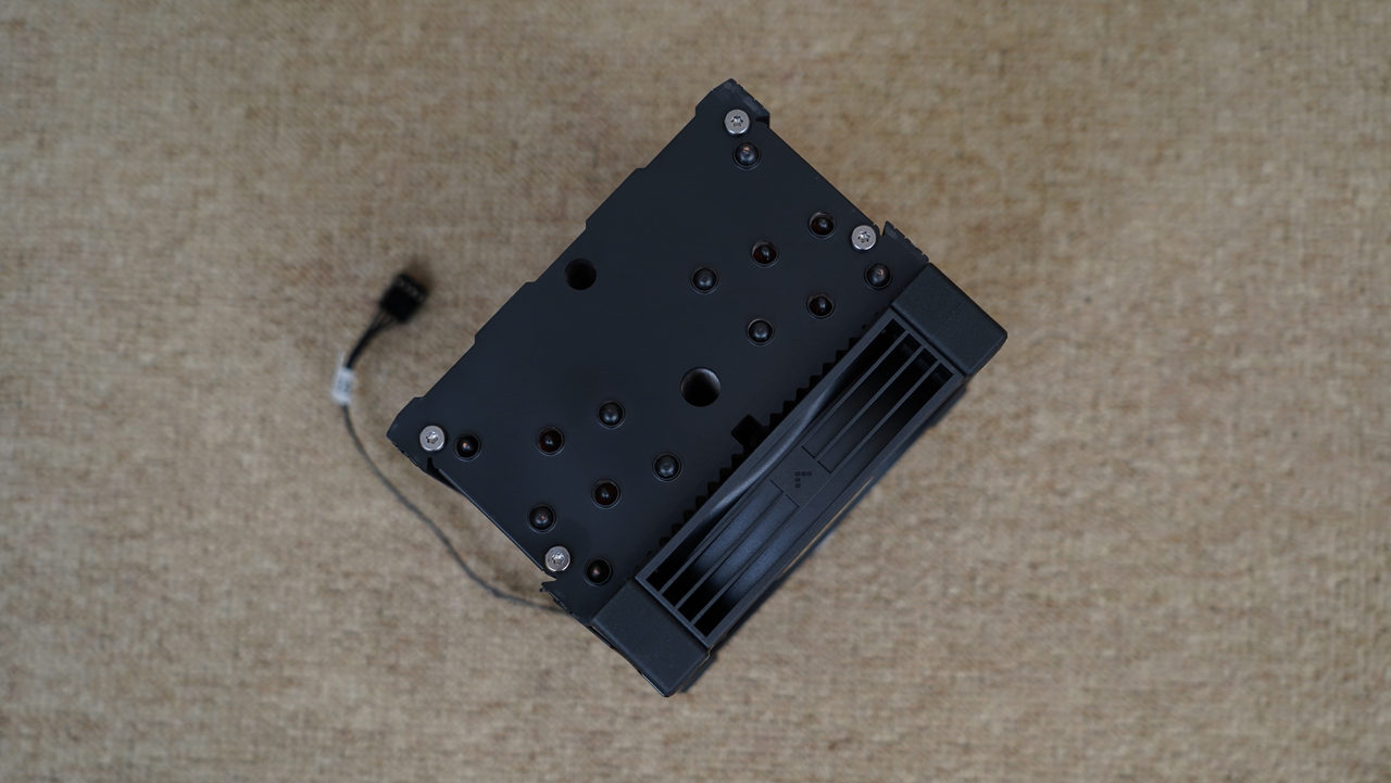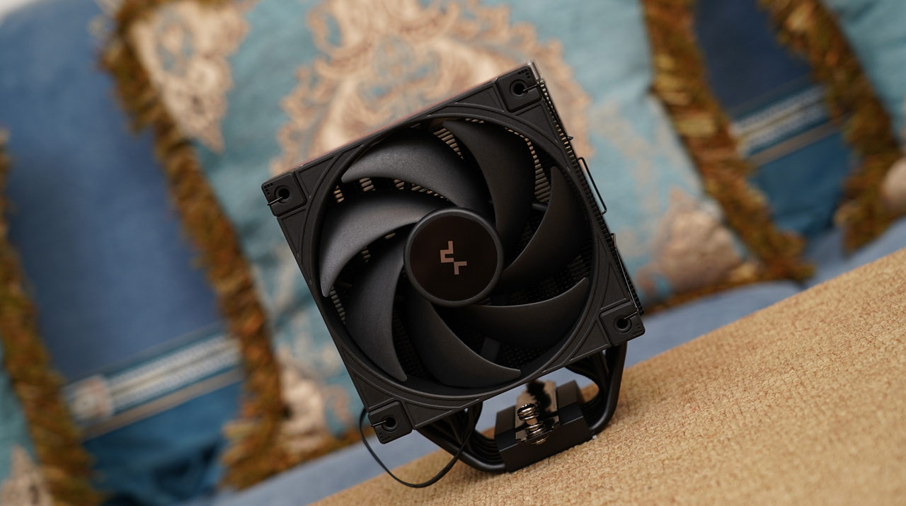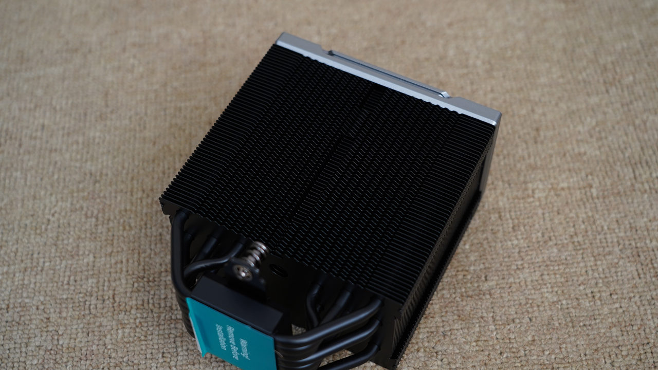 散热器采用单塔12cm规格,外观经过全黑化处理,给人一种冷酷高效的感觉。