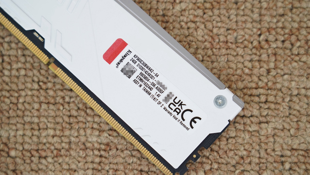 标签特写,该内存采用了6000MHz频率,同时时序低至C30 36 36 80,当然,本人在测试中能轻松将其压至C28 35 35 72。