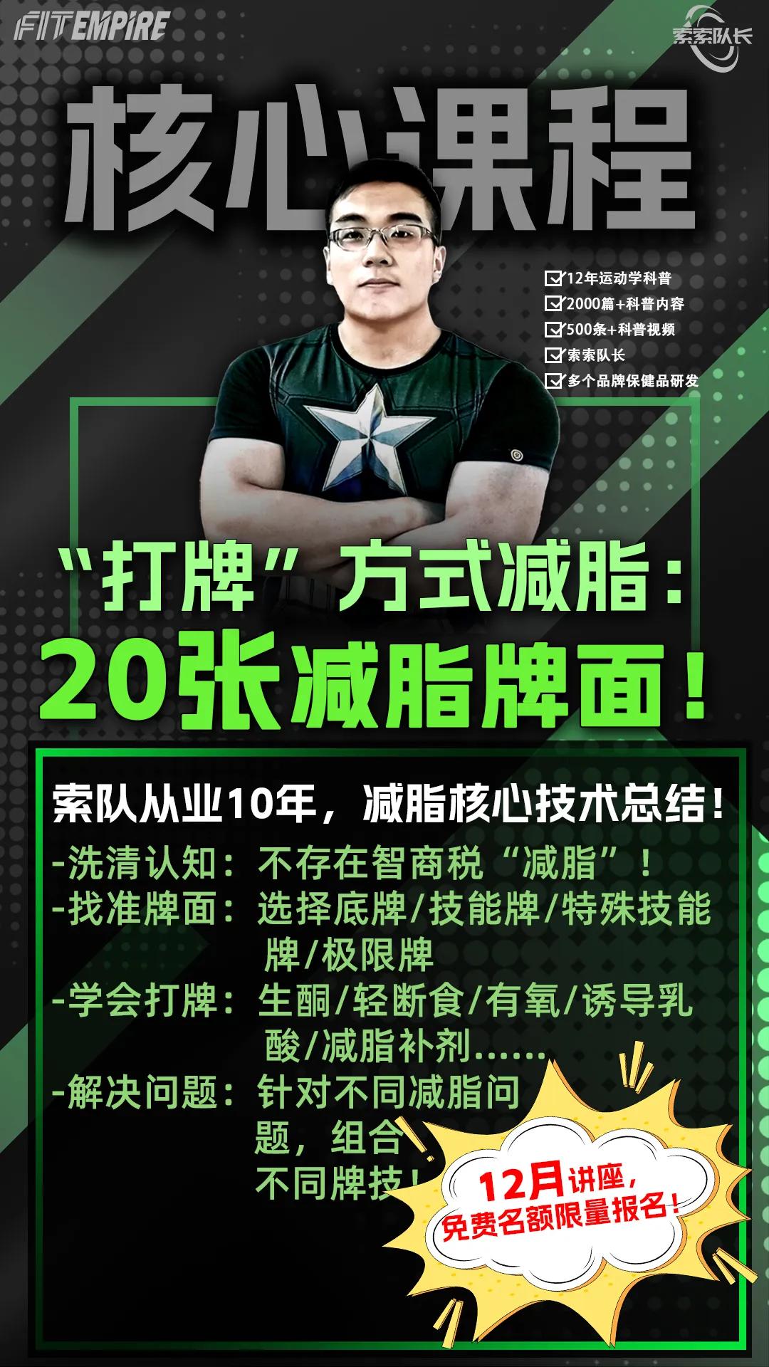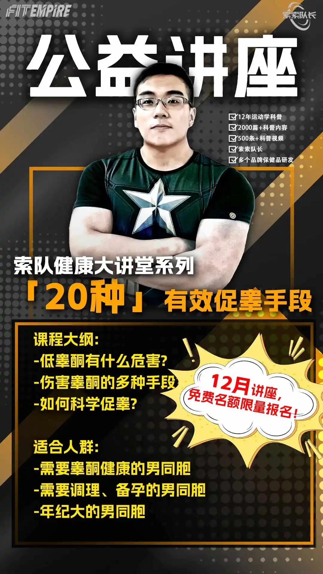 12月底,索队的《减肥牌面课程》、《促睾20种方法》讲座免费返场!
