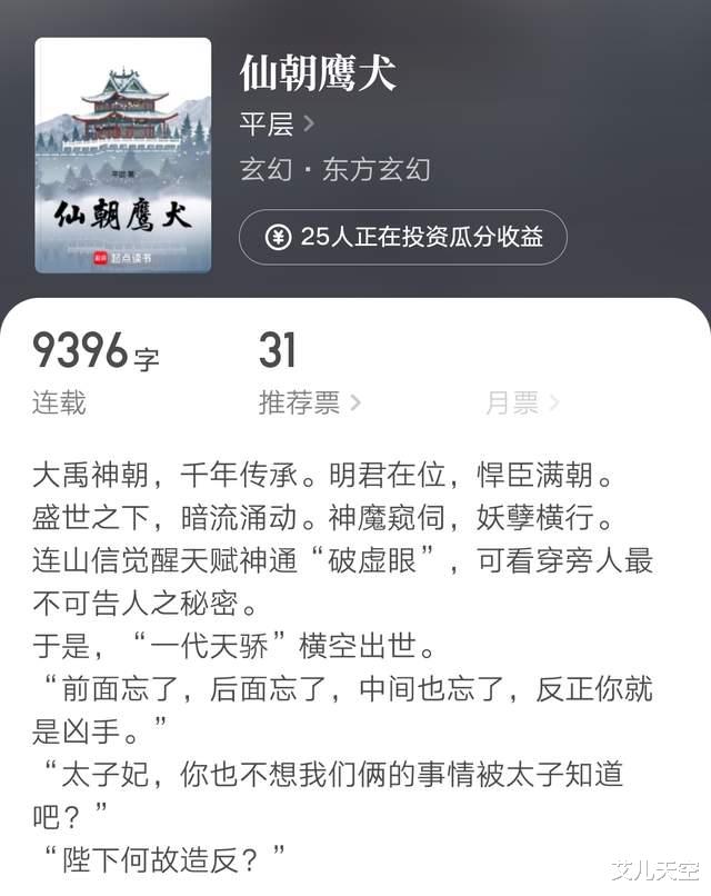 平层2020年的时候以《朕只是一个演员》的后宫文娱小说在起点崭露头角,后来因为经常被举报,就转去写异界架空超凡题材了,《视死如归魏君子》《速通修仙!》都是这一类,也都有万订成绩。