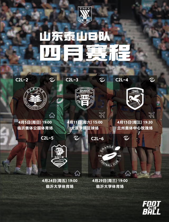 山东泰山B队四月赛程出炉,晚场大战扎堆,临沂主场等你来助威!