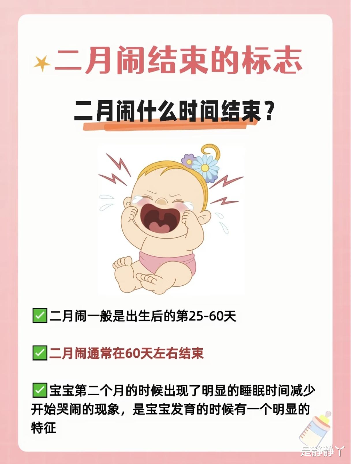 通常来说,当宝宝度过出生后的第60天,也就是满两个月后,这些积极的信号会越来越明显,二月闹的情况基本就会宣告结束。当然,每个宝宝都是独一无二的,结束的时间可能略有不同,但只要看到这些变化,就足以让爸妈们长舒一口气。