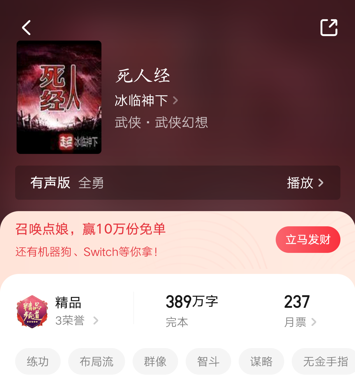 我翻了翻起点的数据,这本书是21年9月份被我加入书架的,到写书评的时候已经过去了三年半,原来这本书我看了三年半。
