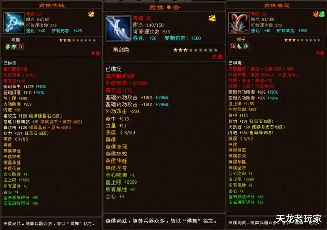 身上的套装是50级燕候套装和御赐套装搭配,除此之外,全身上下没有一件手工。