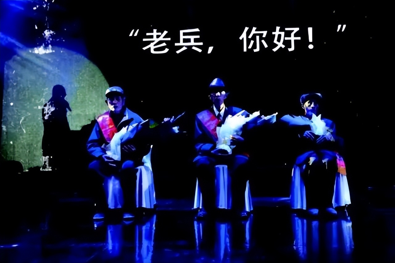 三位老兵从没经历过这样的场面,主持人介绍到他们的经历时,也完全没有反应,只能是呆呆的坐着。