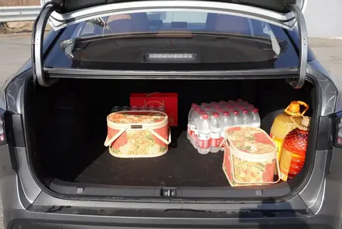 后备箱内部规整度不错,日常放3-4个20寸登机箱很轻松,但受车身造型影响,后备箱开口略窄,装超宽物品时需要多调整角度,同时后排地台有5cm左右凸起,更适合以1-2人日常通勤、偶尔短途带人的家庭使用。