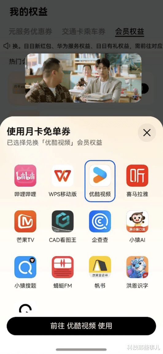 我赶紧点进去参加签到,运气不错,才签到第二天,就领到一张月卡免单券,果断兑换优酷会员了!