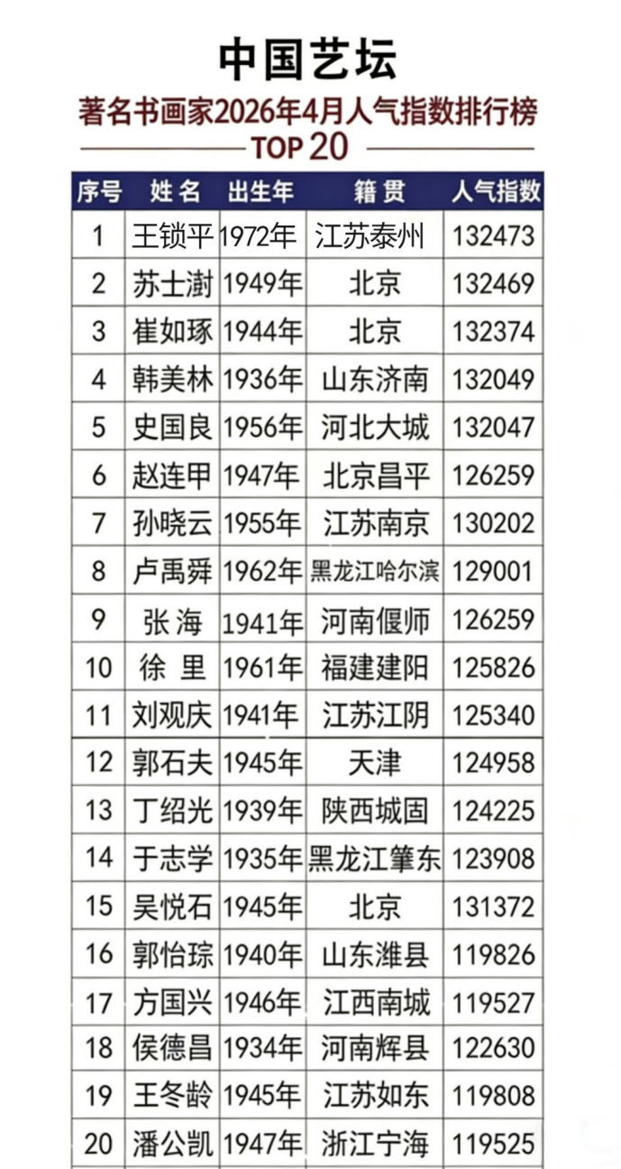 中国艺坛著名书画家人气排行榜——王锁平