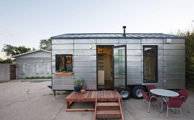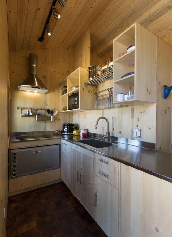 这个集装箱房的外形看上去很普通, 只有铁皮包裹,但是它的外形设计却经过精心考虑,采用了环保材料,并配备太阳能充电板,实现了自给自足的能源供应。